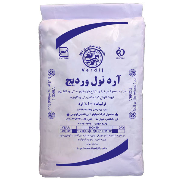 آرد گندم نول (0000) چهارصفر وردیج 25 کیلوگرم ویژه فست فودها و سوخاری کیلویی